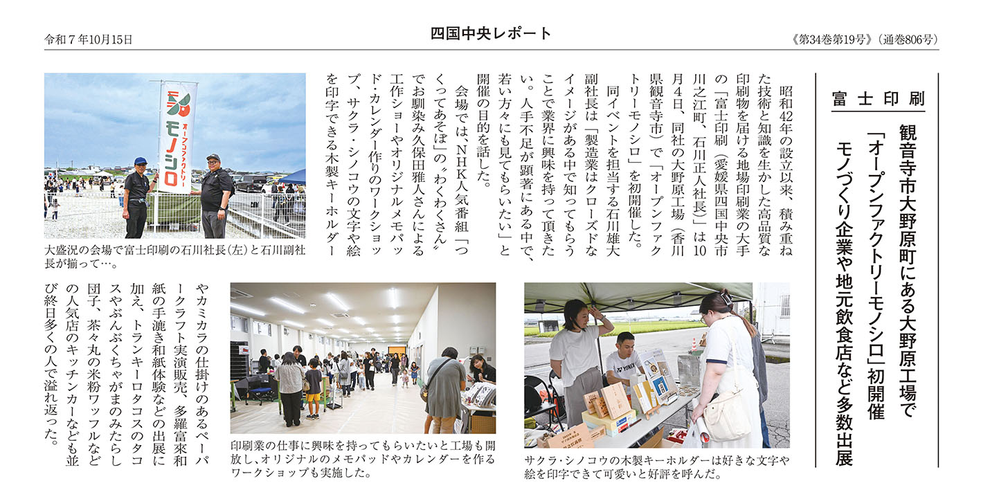 オープンファクトリー「モノシロ」へ取材に見え、記事の掲載をしていただきました。